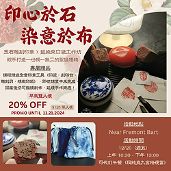🎄 Gemstone Seal Carving X Indigo-Dyed Drawstring Bag Workshop 🎨 ✨ Create a one-of-a-kind handmade gift this Christmas! This holiday season, prepare a special handmade gift for yourself or your loved ones! In this creative workshop, you’ll complete two thoughtful projects: 1️⃣ Gemstone Seal Carving Choose your favorite calligraphy style (traditional Chinese, small seal script, or clerical script) and learn how to use carving tools under the teacher’s guidance. Carve your very own personalized seal—every detail makes it uniquely yours! 2️⃣ Indigo-Dyed Drawstring Bag Experience the art of traditional indigo dyeing and design a beautiful drawstring bag. It’s perfect for storing your seal or wrapping a Christmas gift, adding a personal and artistic touch to your present. 🎁 Special Bonus The workshop includes a complete seal-carving toolset (seal ink, carving base, and carving knife). If you don’t finish your project during class, you can continue creating at home and keep the joy of crafting alive! ⏰ Workshop Schedule 🗓️ Friday, December 20 ⏰ 10:30 AM – 1:00 PM 💰 Cost $125 (Lunch not included, but we can assist with group orders for your convenience.) 📍 Location Near Fremont BART ✨ Limited-Time Offer! 👯 Early Bird Duo Discount: Register with a friend and enjoy 20% off! ⏳ Offer valid for only 3 days, ending November 21—don’t miss out! 🎨 Limited spots available—sign up now! Create a gift that blends art and function, filling this holiday season with warmth and thoughtfulness! 🎄 玉石雕刻印章 X 藍染束口袋工作坊 🎨 ✨ 親手打造一份獨一無二的聖誕禮物! 這個聖誕節,為自己或親友準備一份特別的手作禮物吧!在這場創意工作坊中,你將完成兩個充滿巧思的作品: 1️⃣ 玉石雕刻印章 選擇喜歡的文字風格(中文字體、小篆或隸書),跟隨老師學習如何使用雕刻刀,親手刻出屬於你的專屬印章。每一次的細膩雕刻,都是獨一無二的創作! 2️⃣ 藍染束口袋 體驗傳統藍染技藝,設計並染製一個束口袋,完美用來收納你的印章,或是作為聖誕禮物包裝,展現你的用心與創意。 🎁 專屬贈品 課程包含全套印章工具(印泥、刻印台、雕刻刀),即使課堂中未完成,回家後仍可繼續創作,延續手作樂趣! ⏰ 活動時間 🗓️ 12/20(週五) ⏰ 上午 10:30 - 下午 13:00 💰 費用 $125 (午餐便當另外代訂:段純貞九宮格) 📍 地點 Fremont Bart 附近 ✨ 限時優惠! 👯 早鳥雙人價:雙人報名享八折優惠! ⏳ 活動僅限 3 天,即日起至 11/21,錯過不再! 🎨 名額有限,立即報名! 親手創作一份兼具藝術與實用的禮物,讓這個聖誕節充滿心意與溫度!